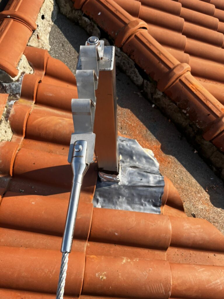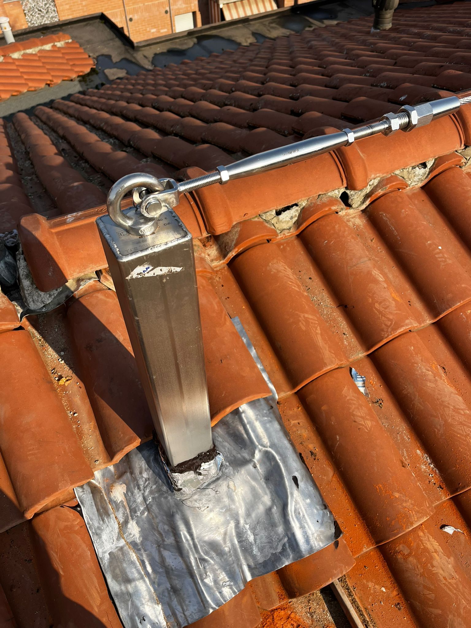 Progettazioni, fornitura, posa e certificazione chiavi in mano di sistema anticaduta dall'alto per copertura edificio residenziale (condominio) composto da sistema linee vita, punti di accesso e di sbarco.